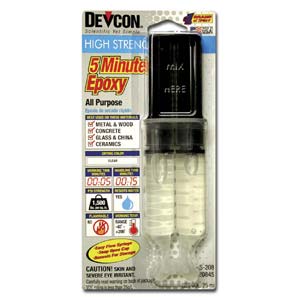 5 Minute Epoxy creates a bond with 1,500 lbs. psi strength which sets in 5 minutes. 5-minute Epoxy dries clear, is waterproof, and is resistant to most chemicals. Works best on metal ,wood, concrete, glass, china, and ceramics.